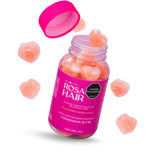 Rosa Hair - Gomitas para activar el crecimiento capilar, reducir caĆda de calleo, fortalece las uƱas y mejora la textura de la piel